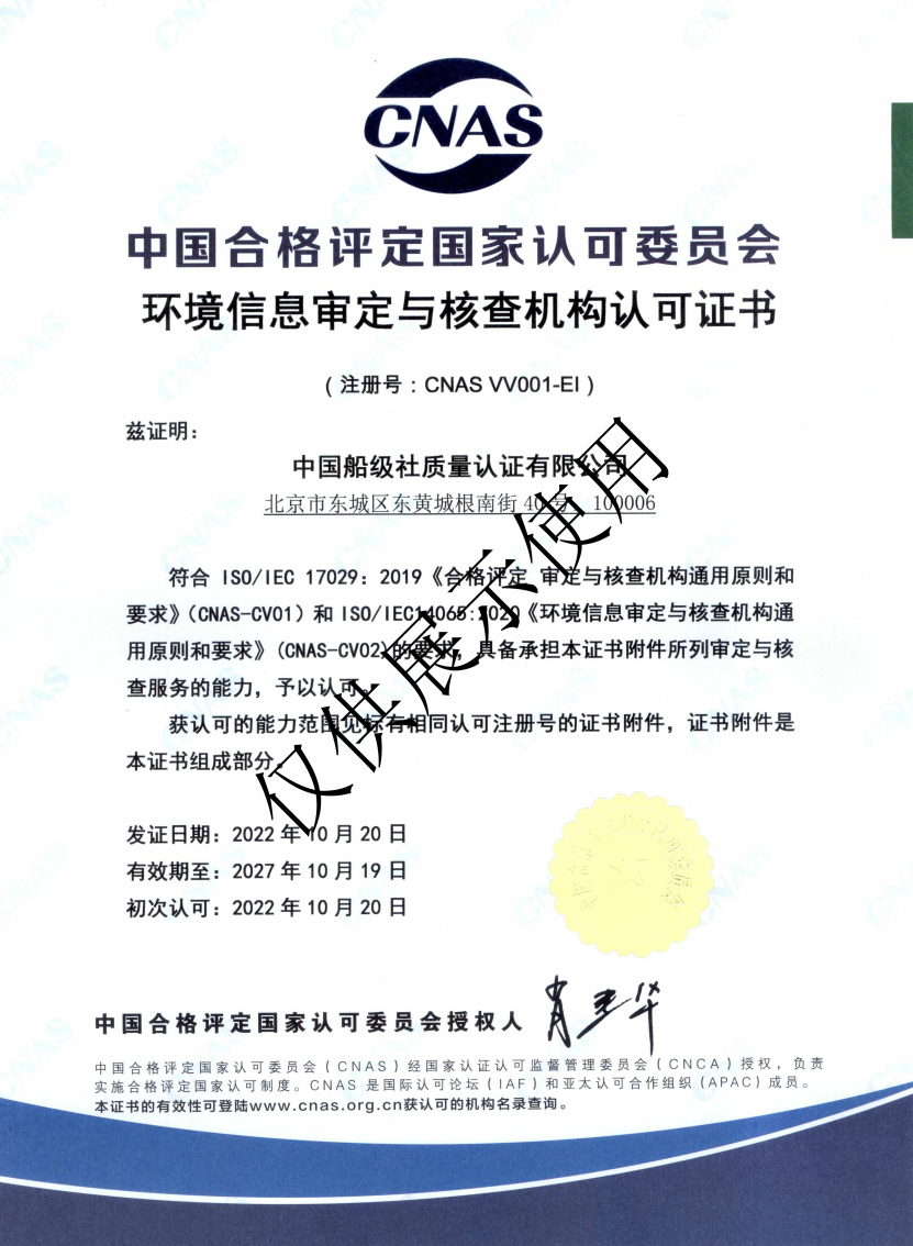 近日,中國(guó)船級(jí)社質(zhì)量認(rèn)證有限公司(CCSC)順利通過(guò)中國(guó)合格評(píng)定國(guó)家認(rèn)可委員會(huì)(CNAS)的認(rèn)可轉(zhuǎn)換評(píng)審,成為首家接受并通過(guò)CNAS最新版GHG認(rèn)可標(biāo)準(zhǔn)的環(huán)境信息審定與核查機(jī)構(gòu)(注冊(cè)號(hào):CNAS VV001-EI)。