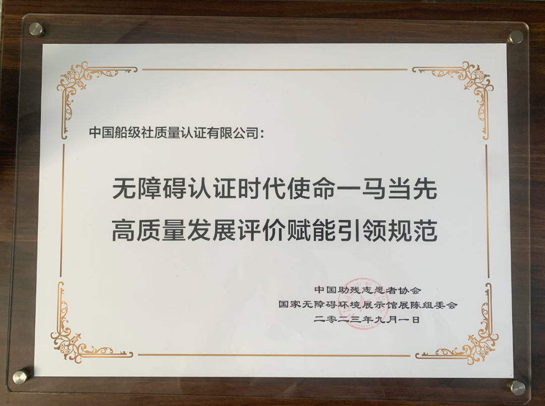 中國船級社質(zhì)量認(rèn)證有限公司(CCSC)受邀參加活動,主辦方為CCSC頒發(fā)了鳴謝匾,對于CCSC作為率先開展無障礙環(huán)境認(rèn)證的機構(gòu),在推動我國無障礙環(huán)境建設(shè)和認(rèn)證制度建設(shè)中的貢獻(xiàn)給與充分肯定。