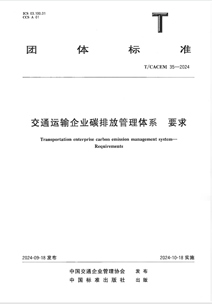 為認(rèn)真落實(shí)國家關(guān)于應(yīng)對(duì)氣候變化的戰(zhàn)略部署,加快發(fā)展現(xiàn)代交通運(yùn)輸業(yè),切實(shí)推進(jìn)行業(yè)結(jié)構(gòu)調(diào)整、轉(zhuǎn)變管理方式,引導(dǎo)企業(yè)有序參與“雙碳”行動(dòng),建立健全符合我國國情的交通運(yùn)輸企業(yè)碳排放管理體系,由中國船級(jí)社質(zhì)量認(rèn)證有限公司(CCSC)牽頭,交通運(yùn)輸部規(guī)劃研究院、西南交通大學(xué)、長安大學(xué)、興業(yè)經(jīng)濟(jì)研究咨詢有限公司、廣東省交通開發(fā)有限公司等單位共同參與編制的團(tuán)體標(biāo)準(zhǔn)《交通運(yùn)輸企業(yè)碳排放管理體系 要求》(T/CACEM 35-2024)由中國交通企業(yè)管理協(xié)會(huì)正式批準(zhǔn)發(fā)布,將于2024年10月18日起實(shí)施。