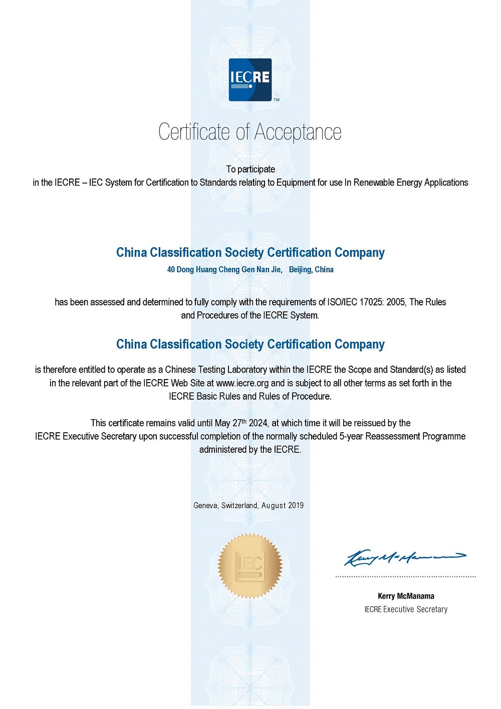 8月5日,國際電工委員會可再生能源設備認證互認體系(IECRE)官方網(wǎng)站公布中國船級社質(zhì)量認證有限公司(CCSC)正式獲得IECRE實驗室認可資質(zhì),標志著CCSC的風電檢測水平獲得國際認可,在風電檢測認證領域國際化進程中邁上新臺階。