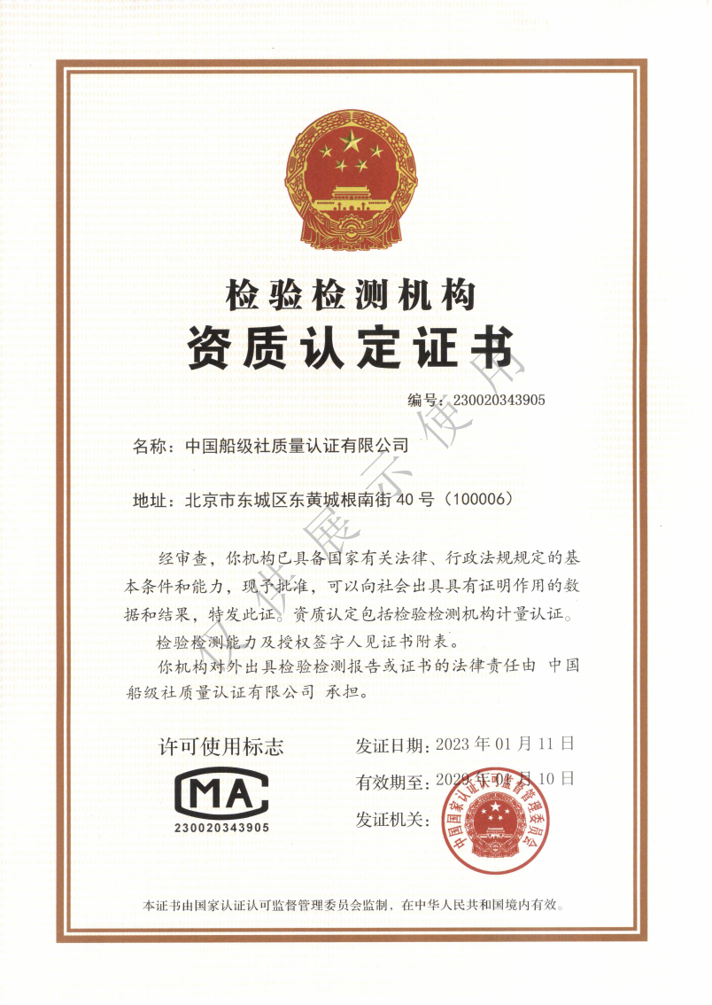檢驗檢測機(jī)構(gòu)資質(zhì)認(rèn)定證書