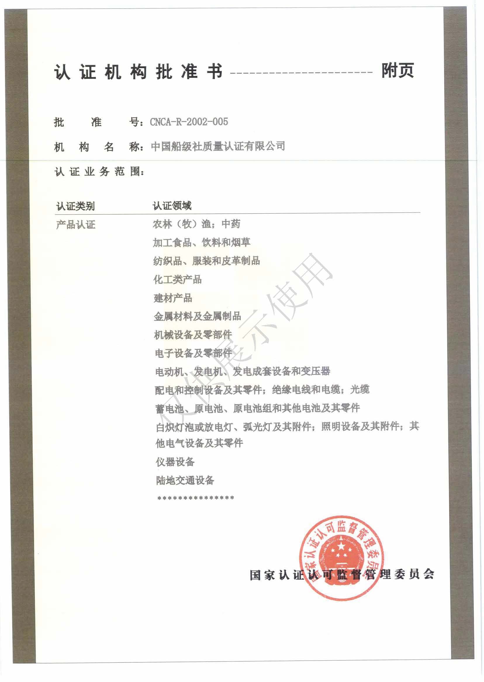 認(rèn)證機(jī)構(gòu)批準(zhǔn)書
