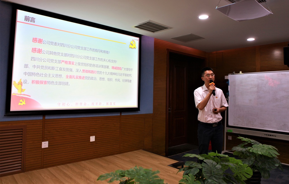 黨委副書(shū)記黃世元同志宣讀了表彰CCSC2019年優(yōu)秀黨員、優(yōu)秀黨務(wù)工作者和先進(jìn)黨支部的決定,公司黨委成員向受表彰代表頒發(fā)證書(shū),梁苗苗作為優(yōu)秀黨務(wù)工作者代表發(fā)言并交流工作經(jīng)驗(yàn),四川分公司支部書(shū)記左德作為先進(jìn)黨支部代表介紹了四川分公司支部開(kāi)展特色黨建工作的情況。