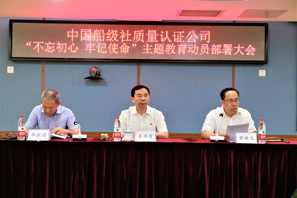中國船級社質量認證有限公司黨委李躍進書記傳達了6月11日中國船級社黨委 “不忘初心、牢記使命”主題教育動員部署大會精神,并就CCSC全面開展主題教育工作做了動員講話。李躍進書記提出了三點意見:一是切實提高政治站位,深刻理解此次主題教育的重大意義;二是緊密聯(lián)系公司實際,全面落實主題教育的各項目標任務;三是精心做好組織安排和實施,確保主題教育取得成效。