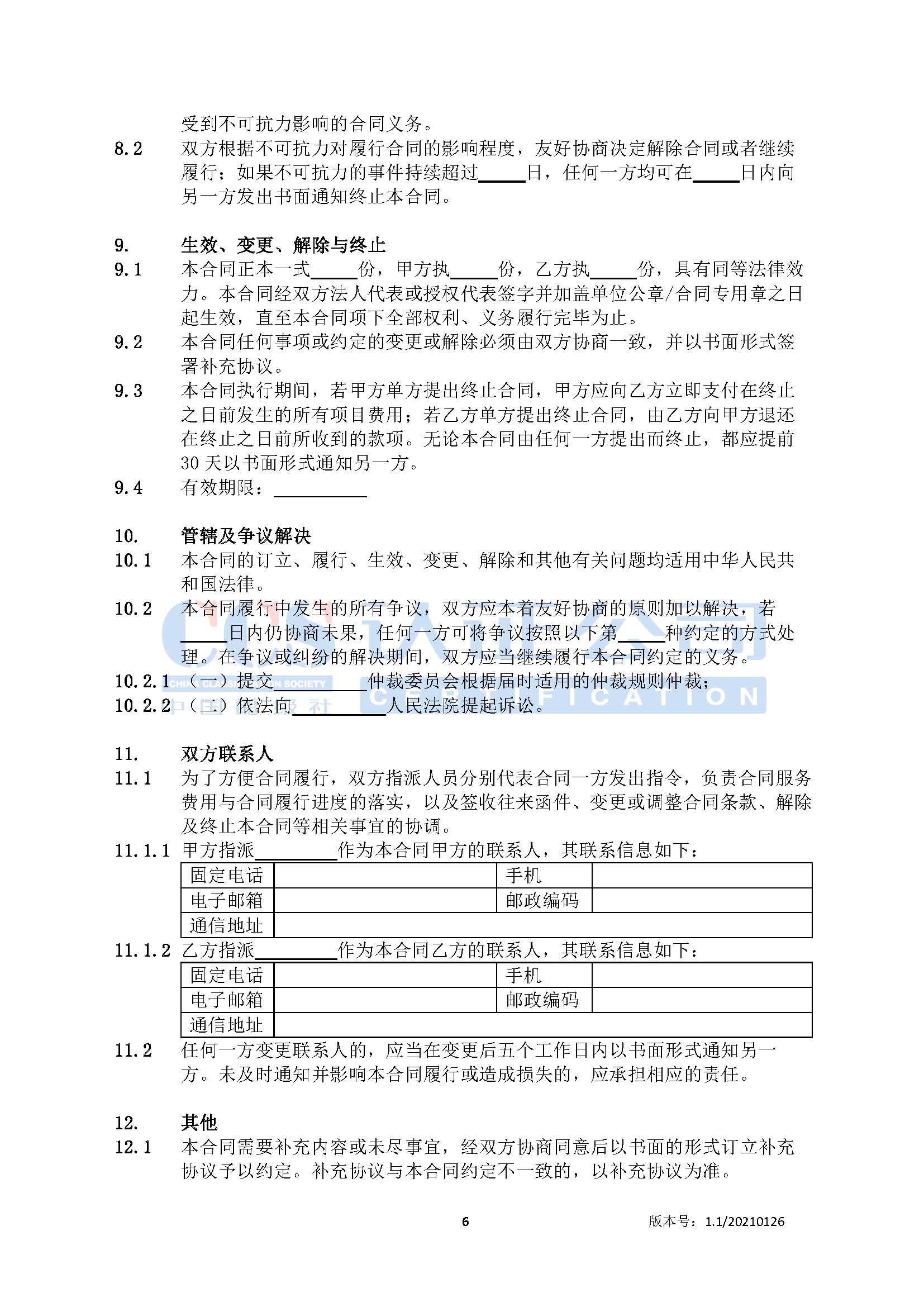 工業(yè)產(chǎn)品檢驗格式合同V1.1(英文版)