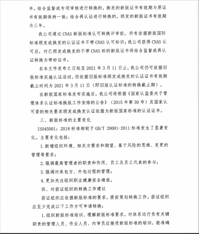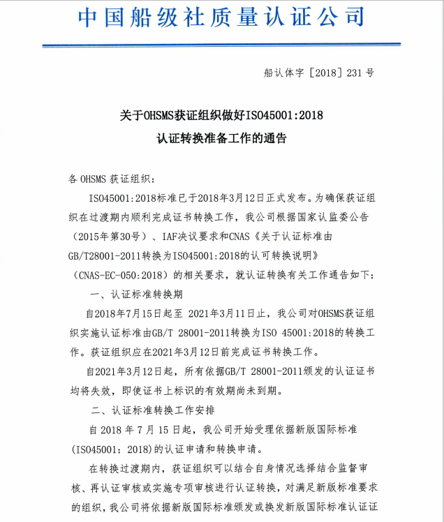 關(guān)于OHSMS獲證組織做好ISO45001_2018認(rèn)證轉(zhuǎn)換準(zhǔn)備工作的通告