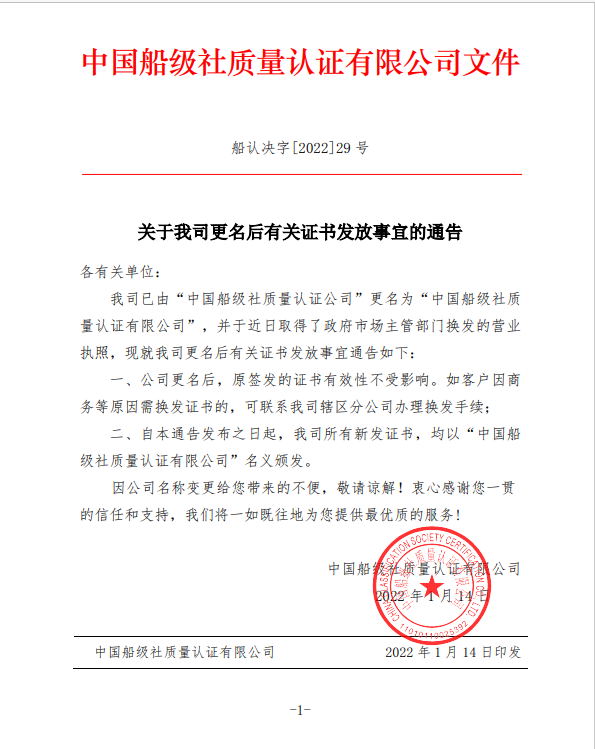 關(guān)于我司更名后有關(guān)證書發(fā)放事宜的通告