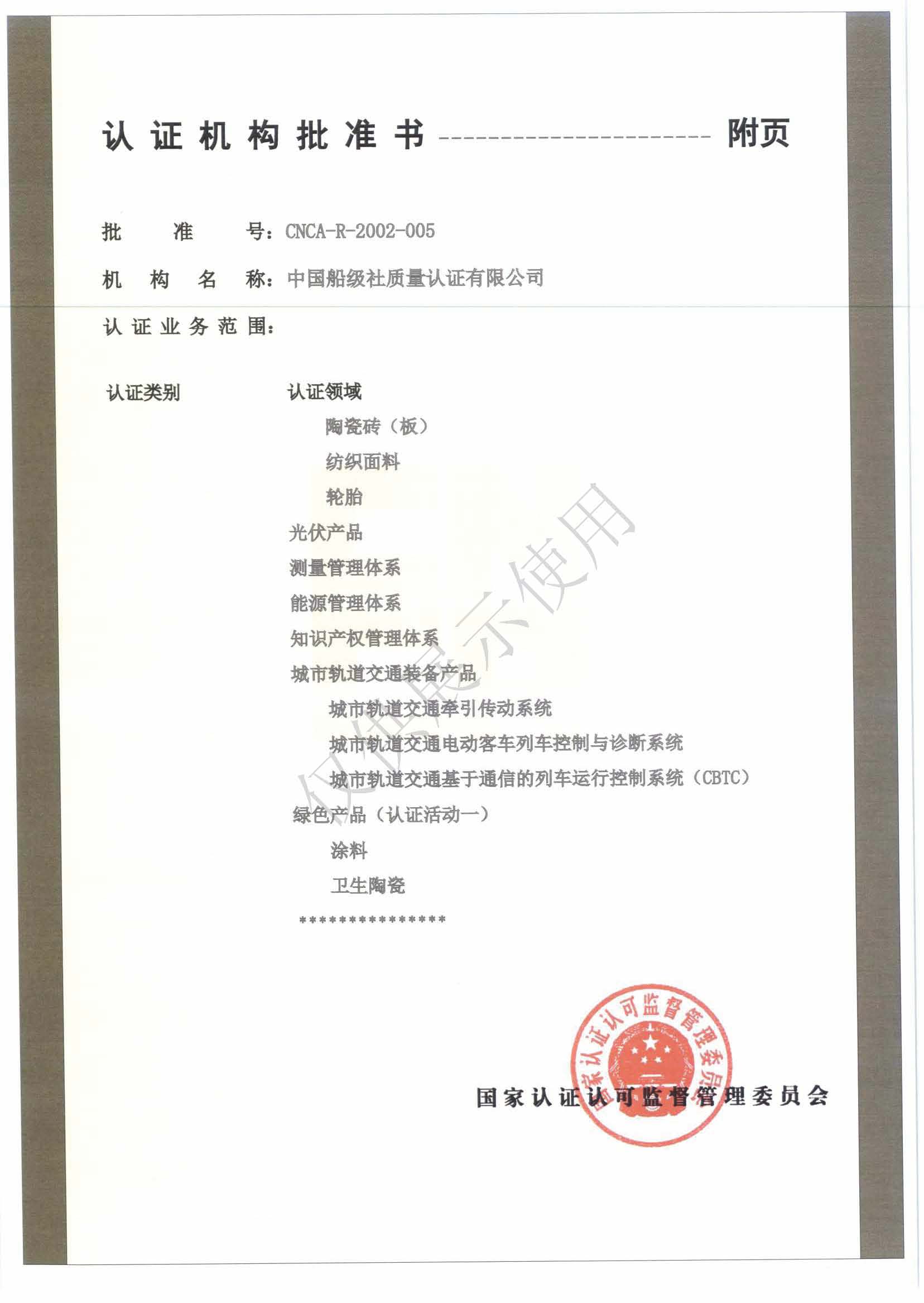 認(rèn)證機(jī)構(gòu)批準(zhǔn)書
