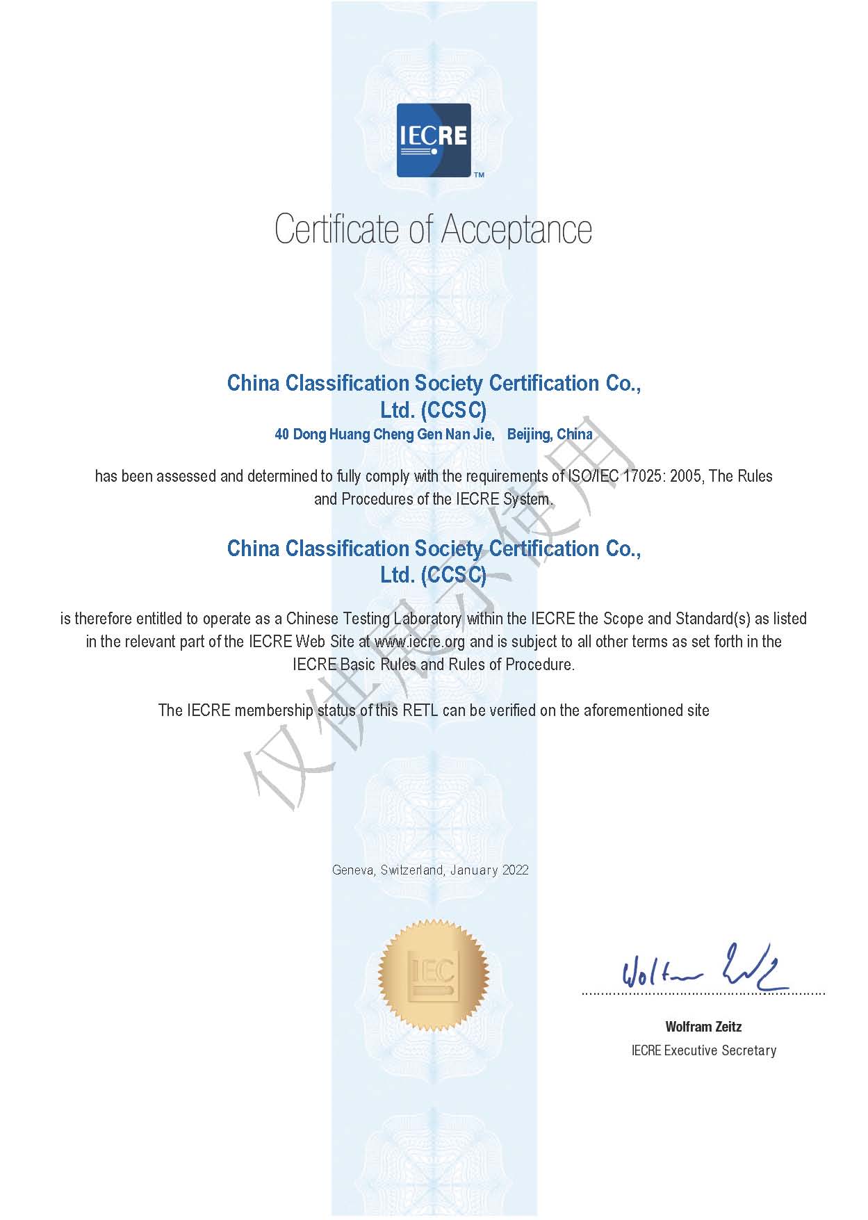 IECRE實(shí)驗(yàn)室認(rèn)可證書