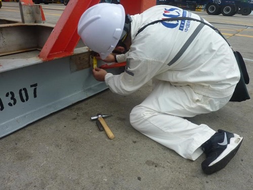 根據(jù)CCSC疫情期間現(xiàn)場安全防護指南要求,驗船師做好自身防護,于2月15日準(zhǔn)時到達深圳蛇口集裝箱碼頭進行平臺框架集裝箱定期檢驗。驗船師首先在船上初步確認集裝箱狀態(tài),隨后要求船員將框架箱移下碼頭進行正式檢驗。